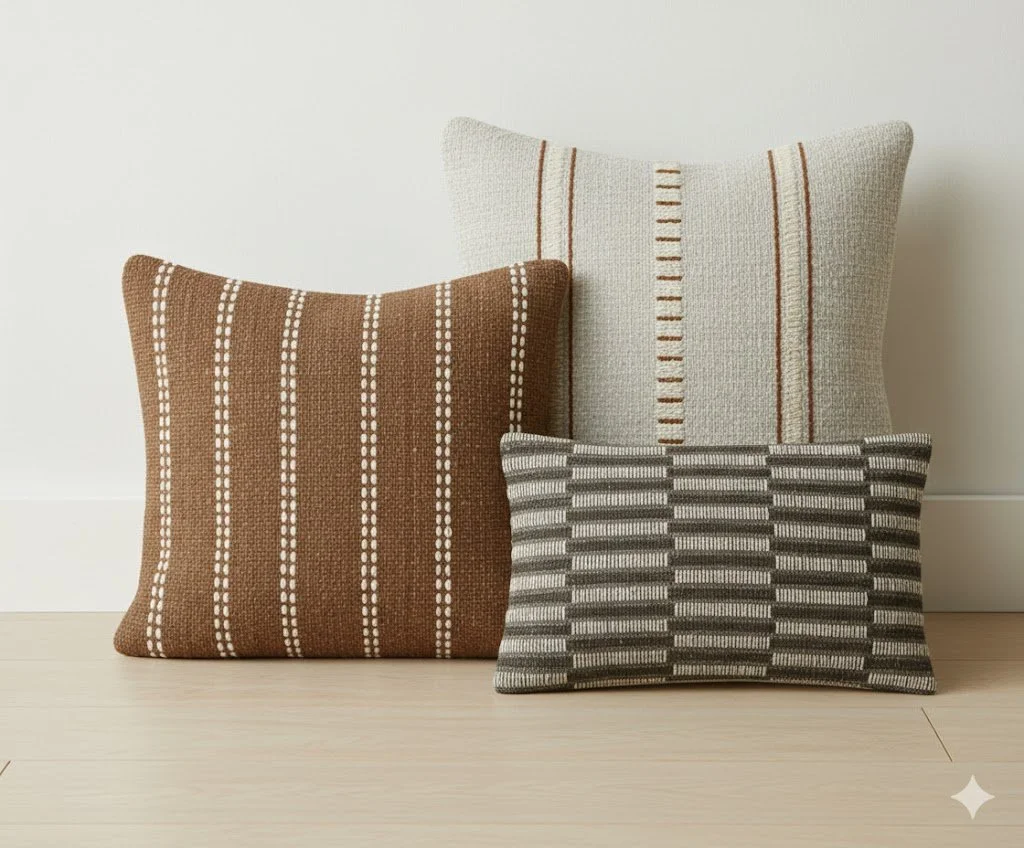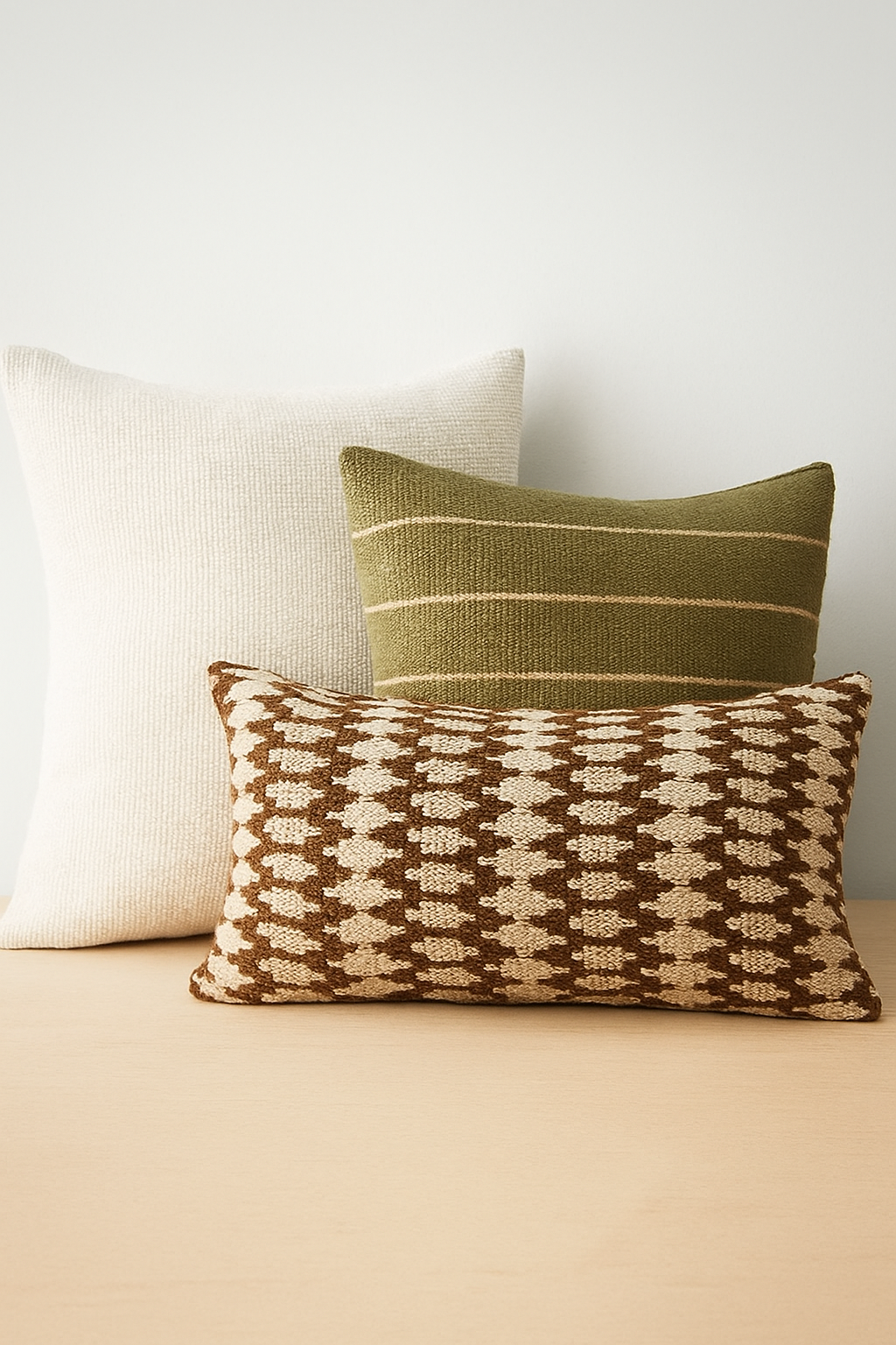 In this diploma program, students learn to design and weave a set of contemporary-style cushion covers on a vertical loom, achieving high‑performance finishes.