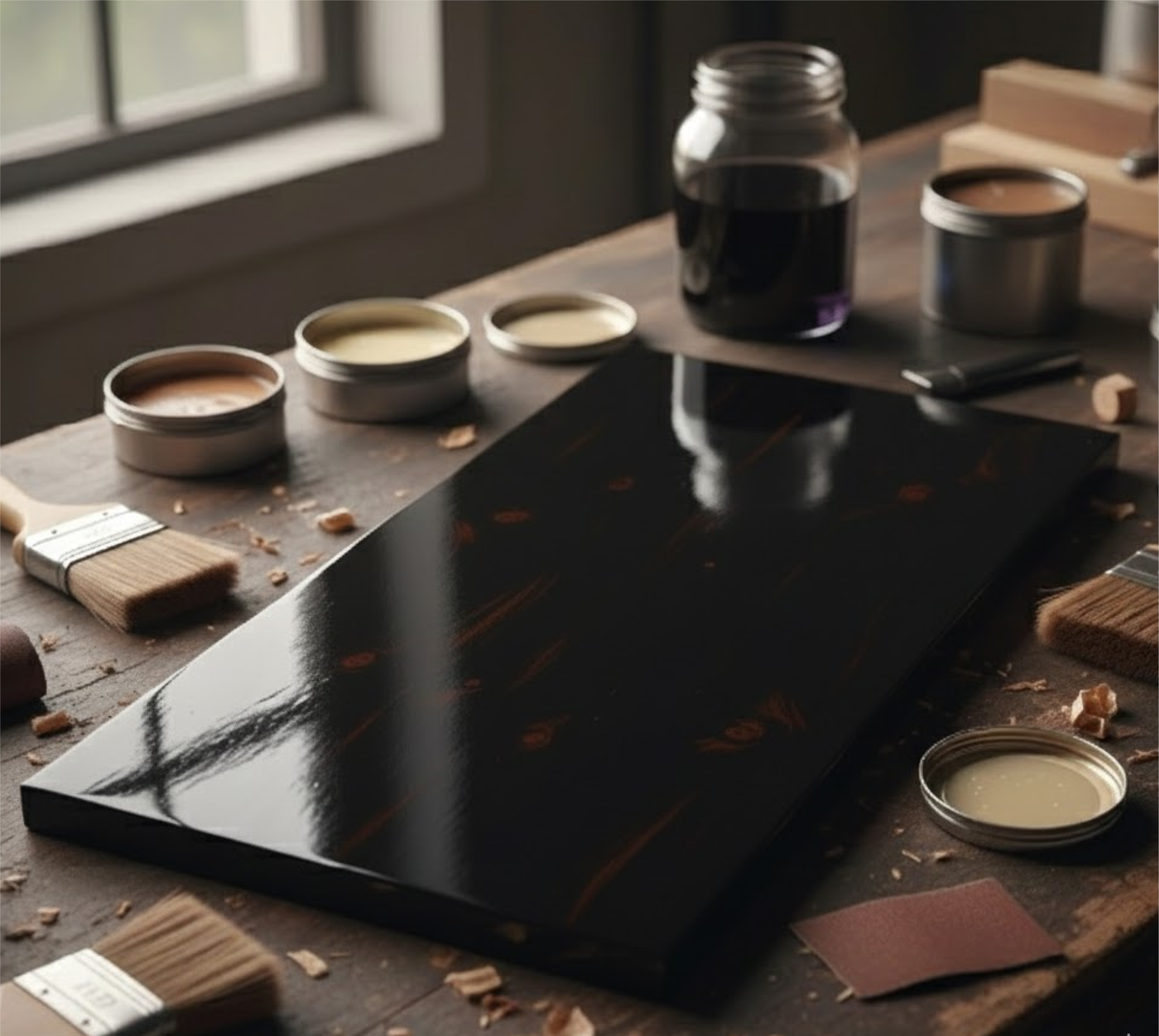 Learning is based on hands‑on exercises and technical demonstrations focused on mastering a range of finishing techniques that enhance the natural grain of the wood while protecting surfaces and achieving clean, high‑quality results that directly impact the final finish of each piece.